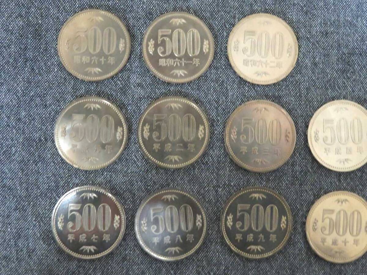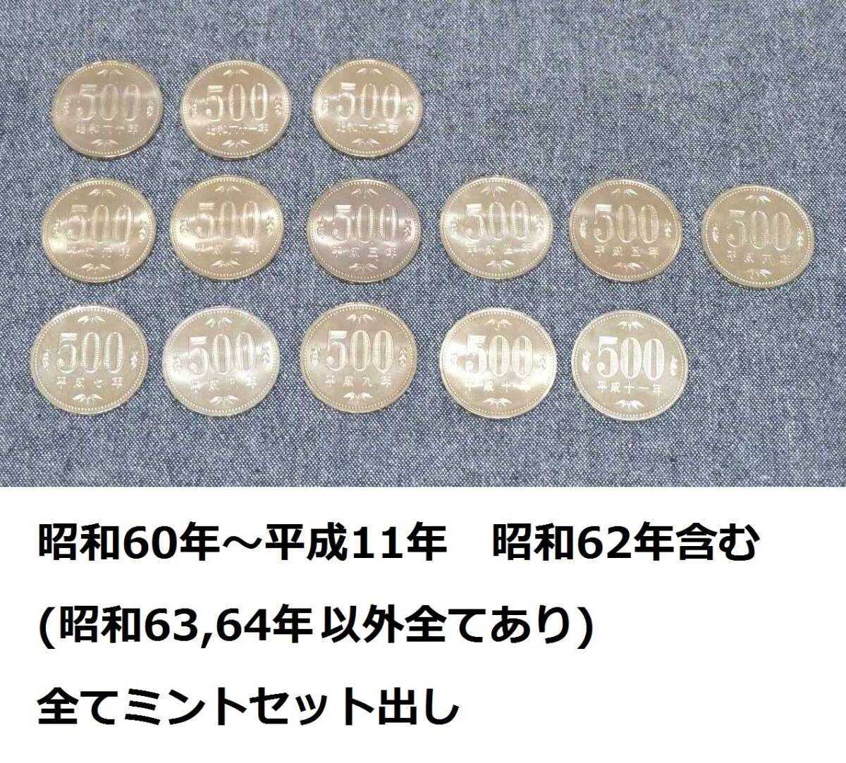 14枚/旧500円硬貨/昭和60年~平成11年(昭和63,64年なし、かぶりなし)/ミント/五百円/貨幣/昭和61年/昭和62年/平成元年/まとめ