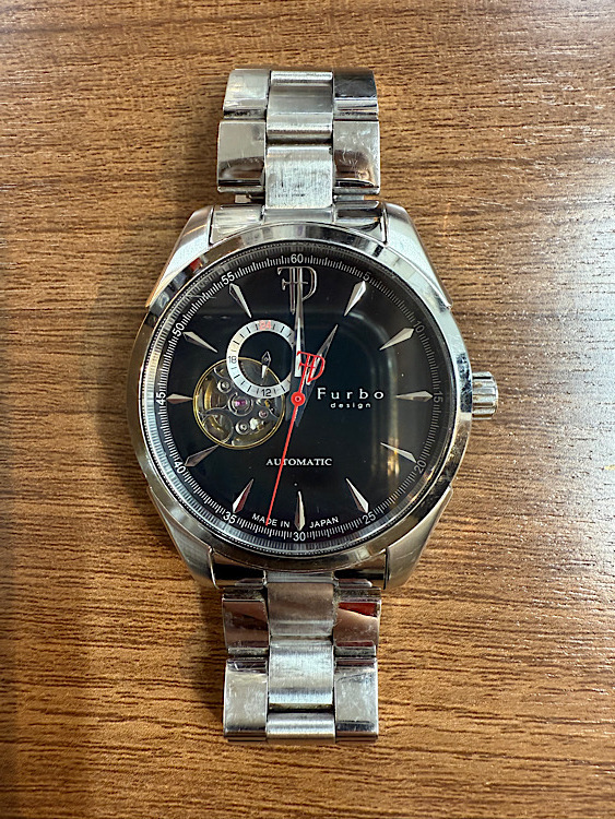 | AT / 自動巻き★Furbo design フルボ デザイン/F5029 時計 裏スケ 黒文字盤 腕時計 稼動品 現状渡し■管No7226 | |||