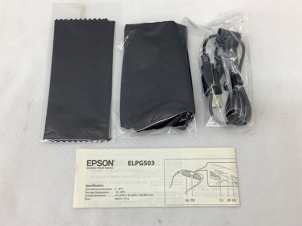 ★商品詳細★ ●状態● 未使用に近い ・元箱保管にともなうスレ、ヨゴレ、ホコリ●仕様/内容● ・メーカー:EPSON ・品名:3Dメガネ/3Dプロジェクター用 ・型番:ELPGS03 ・動作状況:動作未確認 ACB・付属品は画像の物が全てです。 ※掲載画像が全てになりますのでご確認の程宜しくお願い致します。 ※質問による商品説明の追加があった場合、文章追加として、下段に追加させて頂いておりますのでご確認下さい。