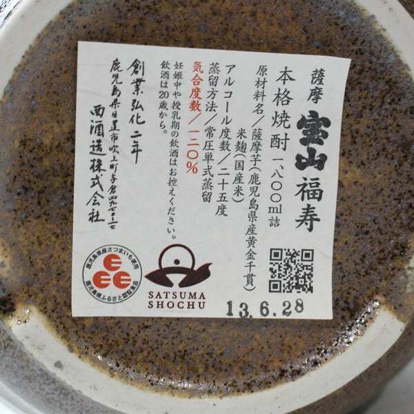 | 商品名稱 : | 1円~宝山 福寿 25度 1800ml 詰日13.06 陶器(重量 2000g)※柄杓折れ T25J190062 |
