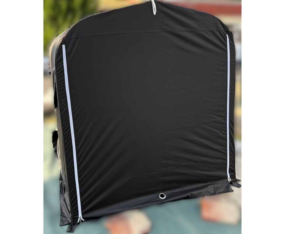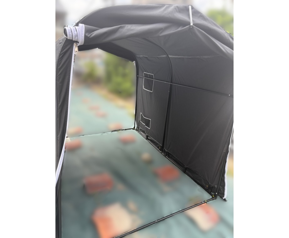【仕様】 サイズ:(横)160 × (奥)230 × (高)175cm ※中型バイク2台または自転車3台程度が入るサイズ感です。 梱包サイズ:12x33x112cm 重量:約23kg フレーム:スチールチューブ(ジョイント式) コネクター:樹脂製 カバー素材:ポリエステル(耐水圧35 00mm) カラー:ブラック