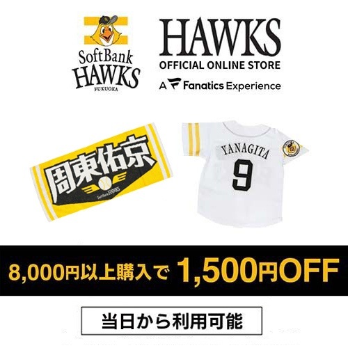 | 商品名稱 : | 【クーポン】福岡ソフトバンクホークス オンラインストア 1500円割引クーポン ※12月15日まで有効 |
