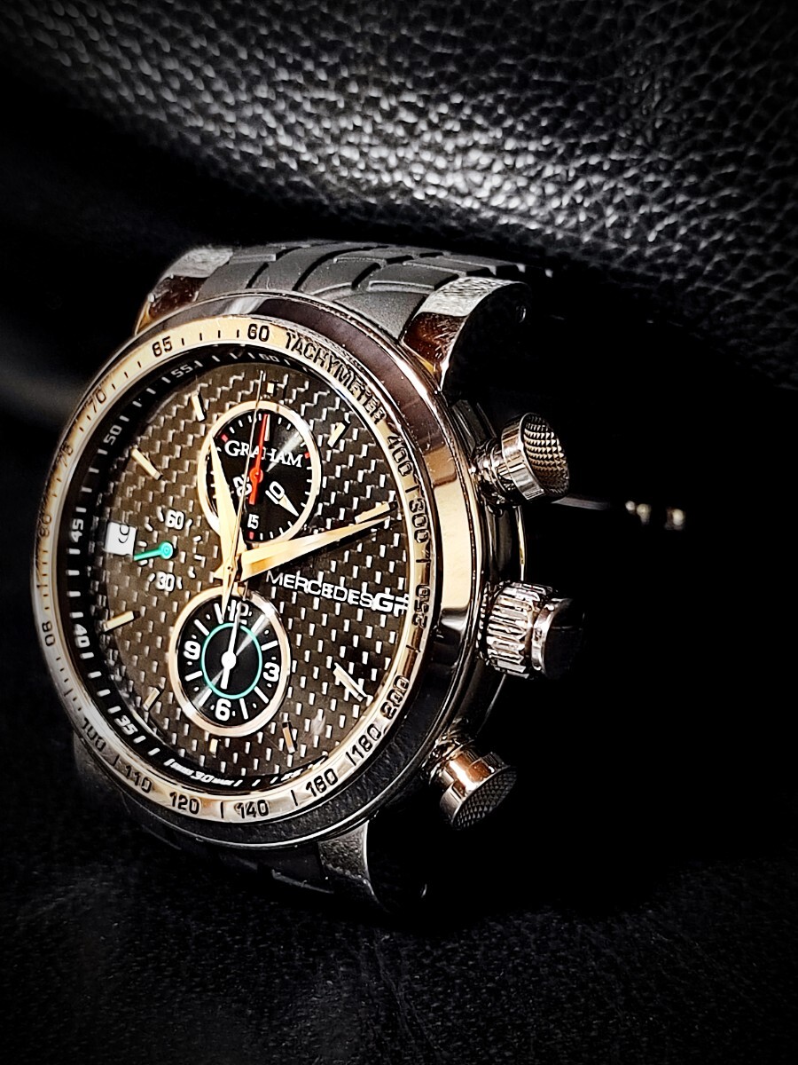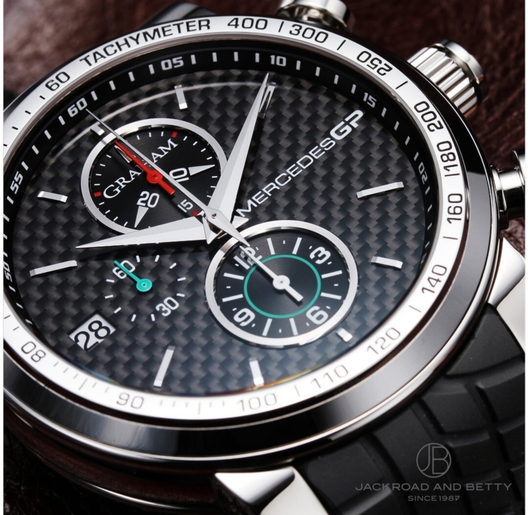 *https://youtu.be/Gj5hw7yohnM?si=eufW2pxosrGZF7Zp*動画もみてみてください★写真よりカッコよさが伝わると思います★ GRAHAM グラハム Silverstone Mercedes GP Trackmaster シルバーストーン メルセデスGP トラックマスター グラハムとメルセデスGPとのコラボレーションモデル 47mm径の大型ケース カーボン文字盤 シースルーバック★ 【極上品】GRAHAM × Mercedes GP クロノグラフ限定モデル!希少な一品!デッドストックで本数も少ないです! こちらは、時計愛好家必見の GRAHAM と Mercedes GP のコラボレーションモデルです。高級感あふれるデザインと機能性を兼ね備えたこのクロノグラフは、モータースポーツの情熱をそのまま腕に纏うことができる逸品です。 特徴: ブランド名:GRAHAM (グラハム) コラボレーション:Mercedes GP(メルセデス グランプリ) ムーブメント:自動巻きクロノグラフ ダイヤル:カーボン、スポーティなデザイン ケース素材:ステンレススチール ベルト:快適なラバーストラップ 防水性能:日常生活防水 タキメーターベゼル:速度計測に便利なタキメーター機能付き 魅力ポイント: 限定生産モデルのため、入手困難。コレクターアイテムとしても非常に価値があります。 メルセデスGPとのコラボによる、唯一無二のレーシングスピリットを感じさせるデザイン。 グラハムならではの高精度なクロノグラフ機能により、日常からスポーツシーンまで幅広く活躍します。 ケース径 47 mm(デカ厚でめちゃくちゃ格好良いです) 各部名称とサイズについて ムーブメント キャリバー 自動巻き cal.G1735 防水性能 100m防水 風防 サファイアクリスタル風防 仕様 クロノグラフ 日付表示 シースルーバック ケース素材 ステンレススチール ベルト素材 ラバー ベルトタイプ ストラップ 世界のトップクラスの時計ブランドとモータースポーツチームがタッグを組んで作り上げた、他にはないタイムピースをこの機会にぜひお手元に! *使用に伴う小キズはあります、神経質な方はご遠慮願います、付属品は無くしてしまったため格安にてお出ししております* >