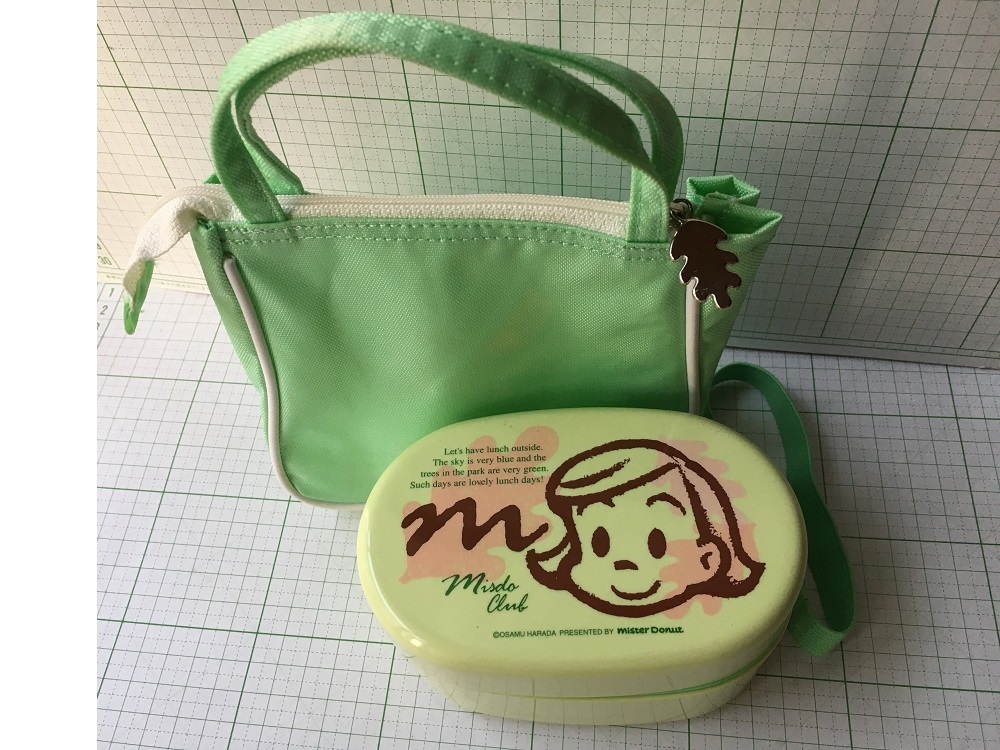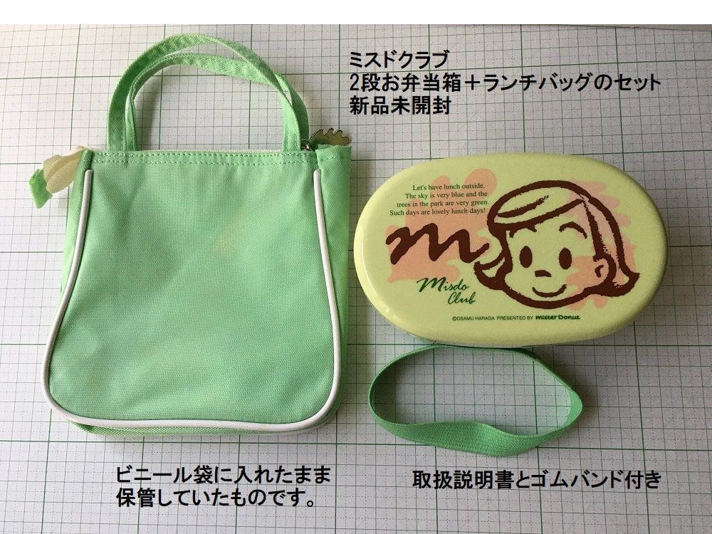 ★ミスタードーナツ お弁当箱 ノベルティ宣傳品,非正規店證是販售商品。 取扱説明書付 昭和レトロ 二段 ポーチつき 新品未使用