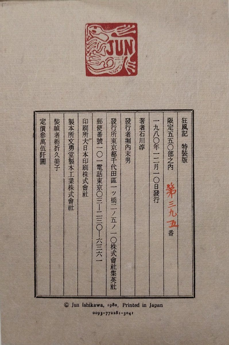 | 商品名稱 : | 肉筆署名入『特装版 狂風記 石川淳 限定395/500部数』集英社 昭和55年 安部公房印刻 |