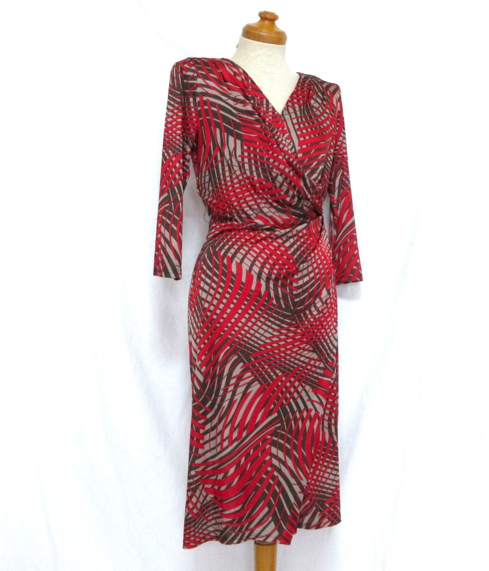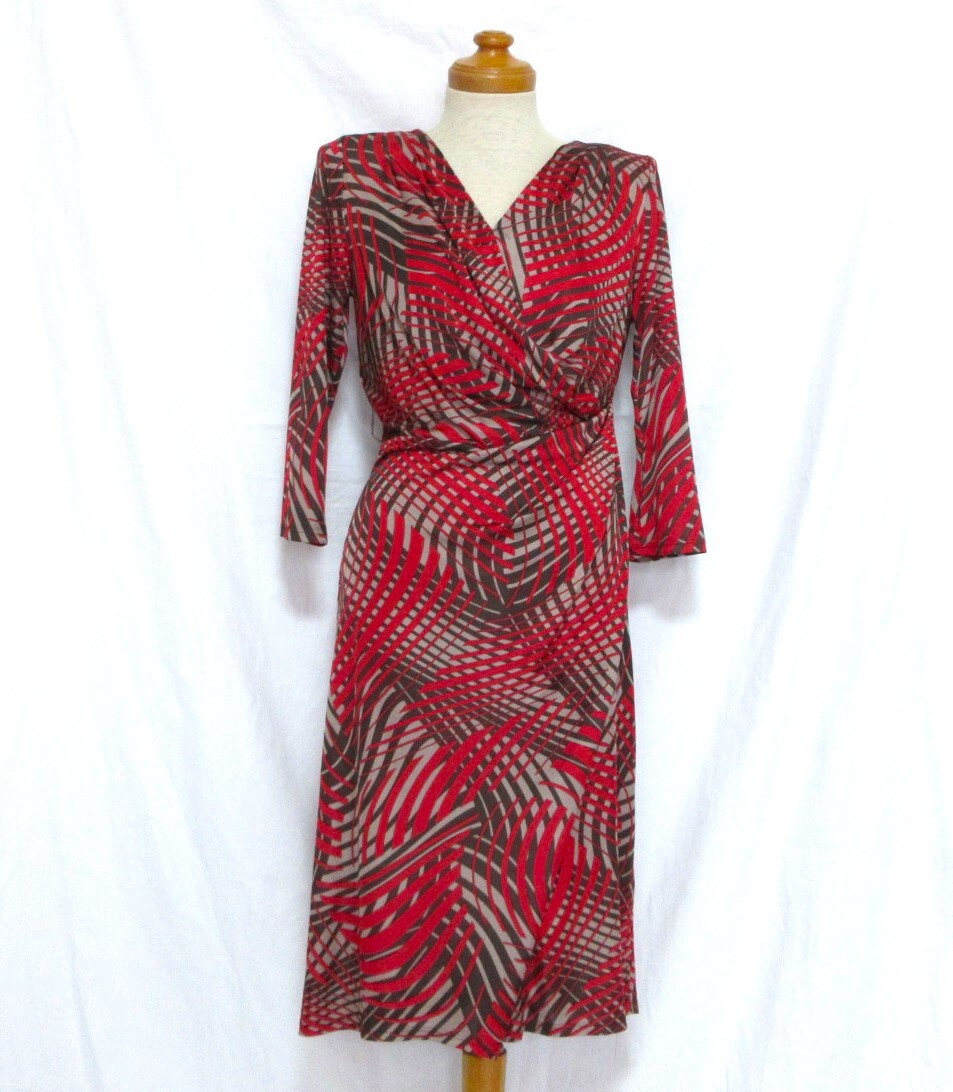 レッドとブラウンの鮮やかなプリント柄が洗練された印象の素敵な1枚です。