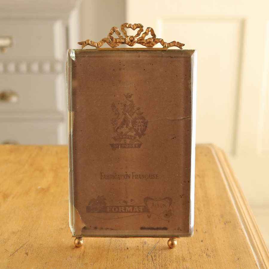 19世紀 1890年代 フランスアンティーク古董商品,有可能客製化、修改、換過零件,請下標錢注意。 ガラス易碎品限空運,非易碎品可使用海運。 の写真立て クリスタルガラス易碎品限空運,非易碎品可使用海運。 真鍮 リボンモチーフ リボン アールヌーボー アールデコ 3-D