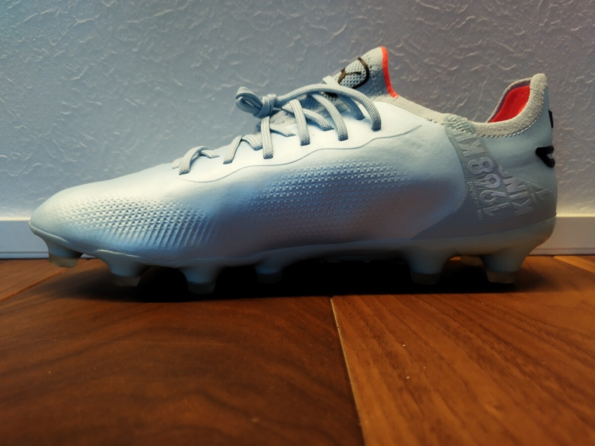 土、人工芝用 世界のサッカープレーヤーの足元を支え続けた「KING」が進化。 「K-BETTER」 新素材である「K-BETTER」を搭載し、新たに生まれ変わりました。不織布からなる合成繊維を絡め合わせたような作りにすることで、天然皮革の構造に近いフィット感を生み出し、今までにはない強度も併せ持つことが可能に。また、従来の「KING」に採用されていたカンガルーレザー同様の柔らかさを持ちながらも、フィット感やコントロール性、保形性が高いこともこの素材の最大の特徴です。 加えて、アッパー表面に水分を含みにくくする加工を施すことで、軽量性にも優れています。 「EVO KNIT SOCK」 履き口周りにはEvo Knit素材を採用し、より高いフィット感を実現させるためにシュータン構造ではなくソック構造。中足部の甲周りをソック構造でフィットさせることで、 横の動きへのサポートを強め、前方向への屈曲時に足とシューズの密着度を強め、推進力を高めます。 「LIGHTWEIGHT OUTSOLE」 アウトソールには新ソールユニットを採用。高反発特殊素材を加えた軽量アウトソールで、 丸形のスタッドはさまざまな動きにグリップ力を発揮し機動性を高めます。また、中足部に配置されたシャンクが中足部の捻じれを抑制し、力の分散を抑える効果ももたらします。 機動力とプレーの正確性をサポートしてくれるスパイクで、繊細なボールタッチが要求されるポジションの方へおすすめの一足です。 ■カラー:02 ( TQ/PP/Silver Sky-PUMA Black-Fire Orchid ) ■素材:合成樹脂 ( ポリウレタン )+合成繊維、合成樹脂底 ( ナイロン+ポリウレタン ) ■重量:約196g ( 27cm ) ■特徴: 留め具/レースアップ 側面にフォームストリップ シュータンにプーマキャットロゴ ヒールにKINGロゴ HG/AG/土、人工芝のグラウンドでの使用に適しています。 K-BETTER/ 繊維を絡め合わせた不織布ベースの非動物性のアッパー素材。天然皮革の構造に近く、高いフィット感と今までにはない強度、ボールコントロール性を実現。 従来のカンガルーレザー同様の柔らかさを持ちながら、表面に水を含みにくくする加工を施すことで、軽量性も実現します。 EVO KNIT SOCK/ 中足部の甲周りをソック構造でフィットさせることで、横の動きへのサポートを強化。前方向への屈曲時に足とシューズの密着度をあげ推進力を高める効果を発揮します。 EXTRA HEAL COUNTER/ アウトソールと一体となったヒールカウンターがかかとのフィット感を高め、キック時の踏込みの安定感、さまざまなステップワーク時のかかとのブレを抑制します。 LIGHTWEIGHT OUTSOLE/ 高反発特殊素材を加えた軽量アウトソール。丸形のスタッドはさまざまな動きにグリップ力を発揮し、機動性を高め、中足部に配置されたシャンクが中足部の捻じれを抑制し、力の分散を抑える効果をもたらします。 Nano Grip Technology/ 高反発特殊素材をベースに使用した軽量性に優れるリムーバル・インソール 。素材を微起毛させることでグリップ力を発揮し、アウトソールと一体感を生むことによって、より強い蹴り出しをサポートします。 リサイクル素材使用/ アッパーに20%以上リサイクル素材を使用し、よりよい未来に一歩近づく取り組みをしています 素人の暗所での保管品です。軽微なキズ汚れがある場合がございます。画像をご参照頂きノークレームノーリターンでお願い致します。 入札される方は当方自己紹介をお読み下さい。 複数落札予定で、まとめて取引をご希望の方は当方自己紹介をご覧下さい。 【0324】 >