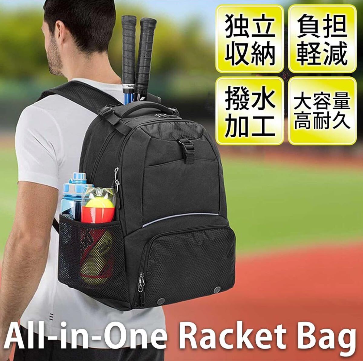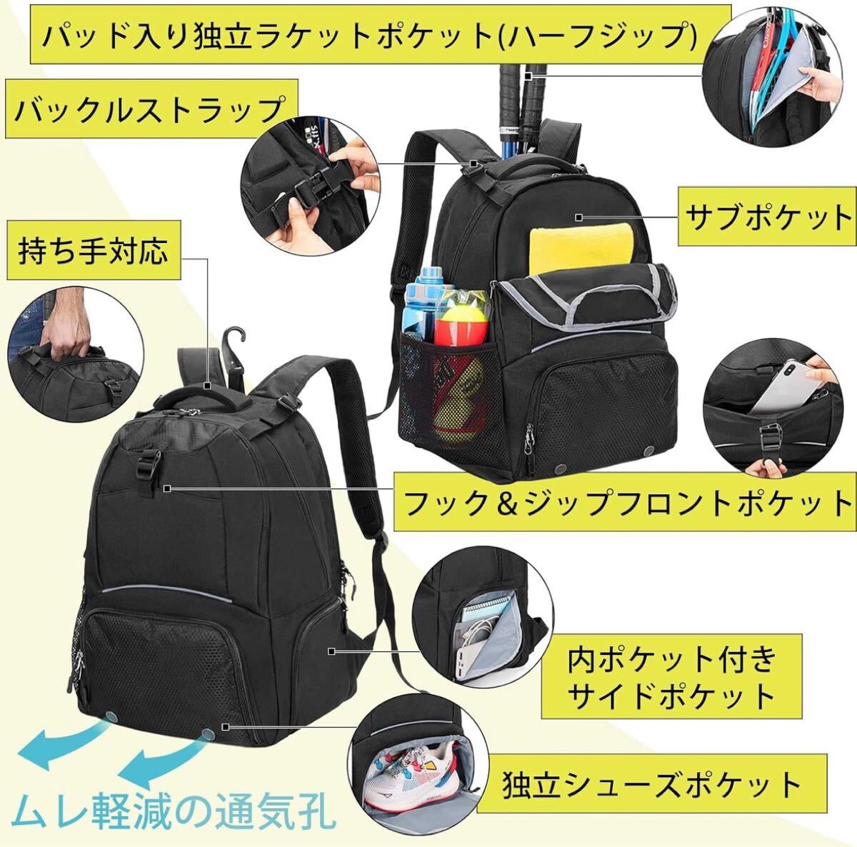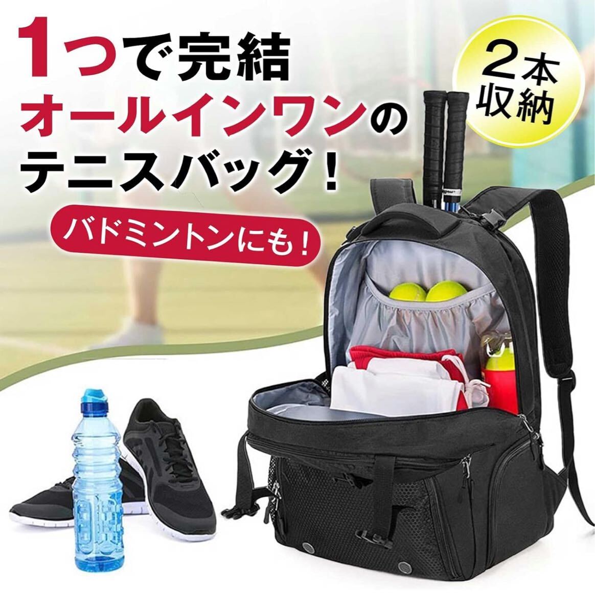 17 ラケットバッグ テニスバッグ テニス リュック 【独立収納】 【負担軽減】 2本収納 黒