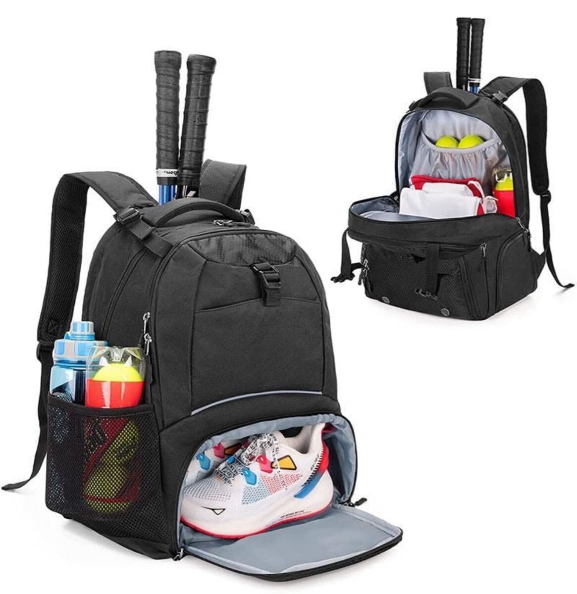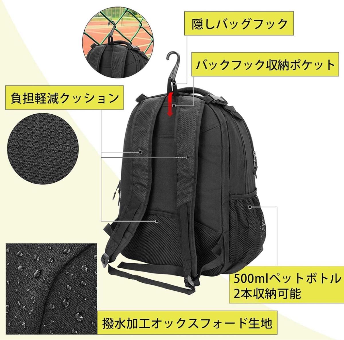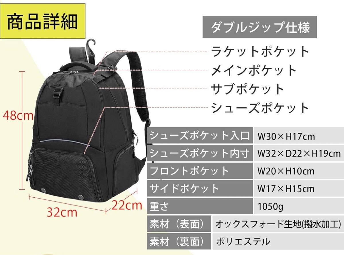 17 ラケットバッグ テニスバッグ テニス リュック 【独立収納】 【負担軽減】 2本収納 黒
