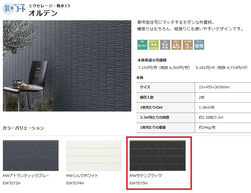 | 商品詳細 | メーカー:KMEW 型番 : EW7075H カタログ 色 : サテンブラック サイズ :15×455×3030mm 24㎏ |