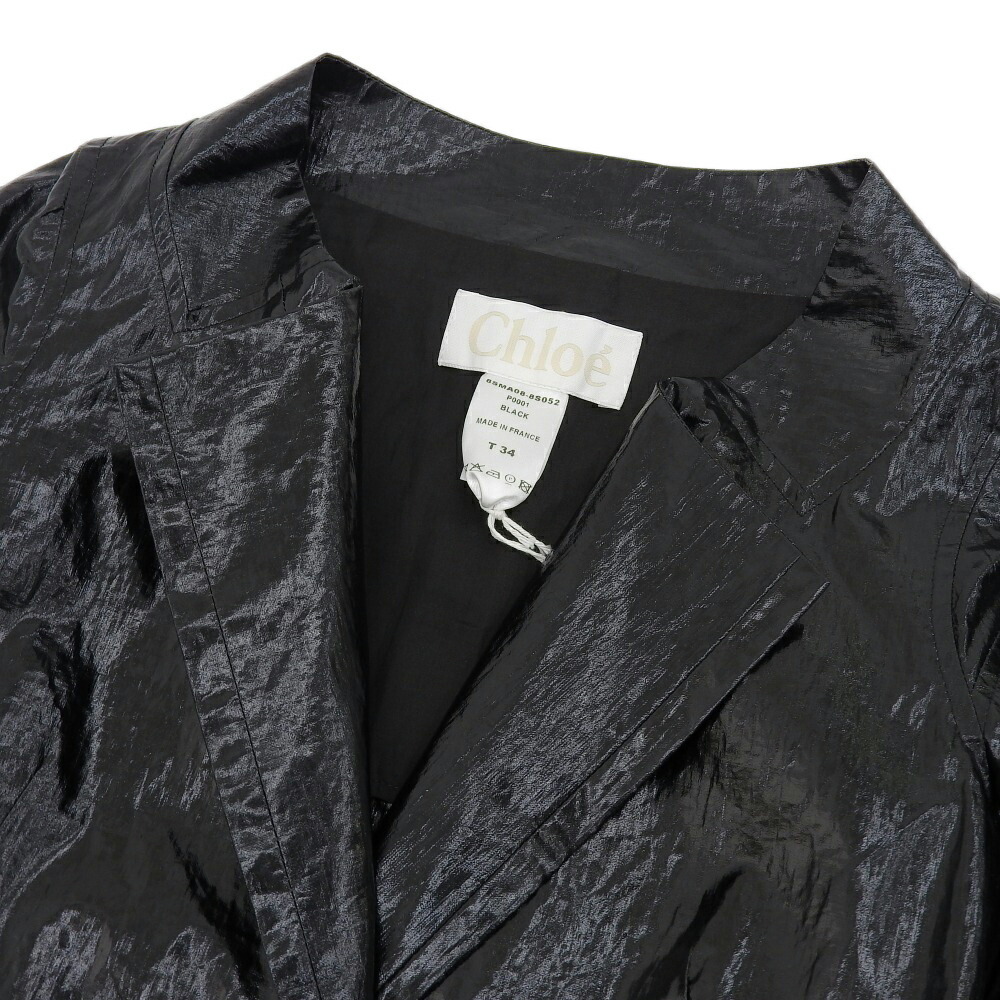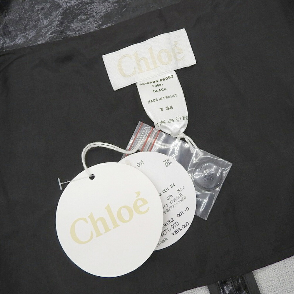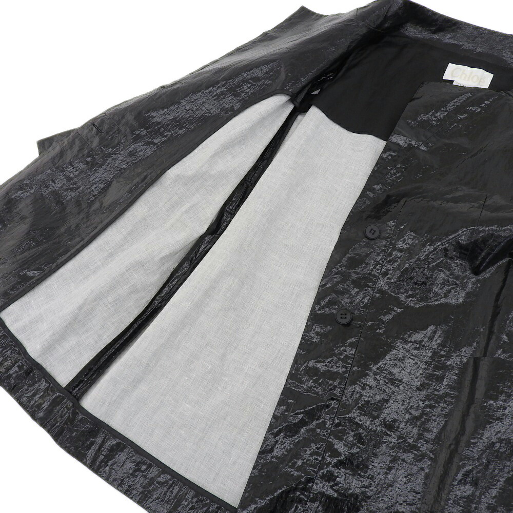 | 未使用 クロエ Chloe 2008年商品 リネン混 ノーカラー ベルテッド ラップ コート 34 黒 |