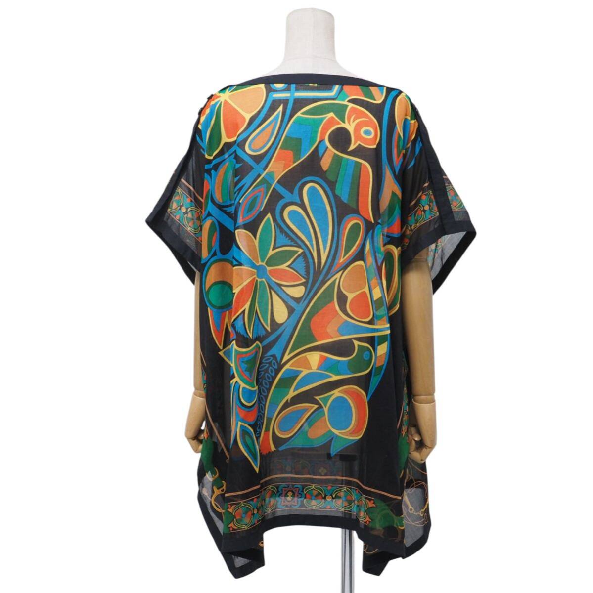 | TJ2365☆エルメス HERMES ビーチ カバーアップ チュニック ワンピース シースルー コットン 総柄 ブラック×マルチカラー サイズTU | |||