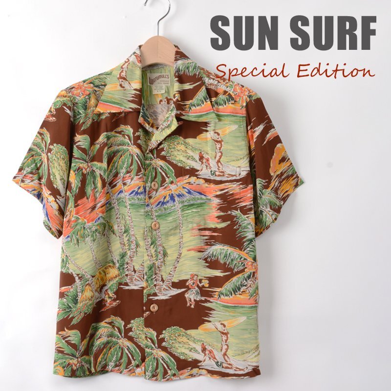 サンサーフ スペシャルエディション アロハシャツ キヒキヒ SUNSET PALMS SS34662 サイズXS ブラウン バンブーボタン SUN SURF #fz3118