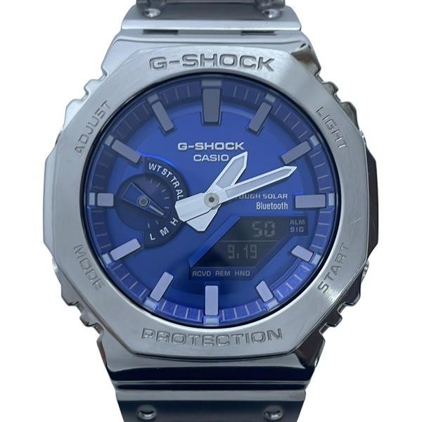 商品説明 ブランド:CASIO(カシオ) 型番:GM-B2100AD-2AJF コンディションレベル:【7】きれいめ 実寸サイズ フェイス : 約 3.3 cm × 3.3 cm ケース : 約 5 cm × 4.5 cm (リューズ含まず) ベルト幅 : 約 2.4 cm 腕周り : 約 17 cm 商品詳細 ジャンル:腕時計 商品名:G-SHOCK デザイン:フルメタル/スマートフォンリンク 文字盤カラー:黒×メタリックブルー ベゼルカラー:シルバー ケースカラー:シルバー ベルトカラー:シルバー ベルトの素材:SS(ステンレススチール) 男女別:メンズ ムーブメント:ソーラー電池 動作状況:【確認済み】 動作確認済みではございますが、電池残量は不明です。電池交換はお客様ご自身でお願いいたします。 シリアル:241212A0*** 付属品:箱、ケース、取扱説明書、余りコマ×5付属品について コンディションの備考 ※あくまで商品の外観ダメージです。動作状況をご確認の上、ご入札くださいませ。 【ケース】 ・全体的 ⇒ 傷 【ベルト】 ・全体的 ⇒ 傷