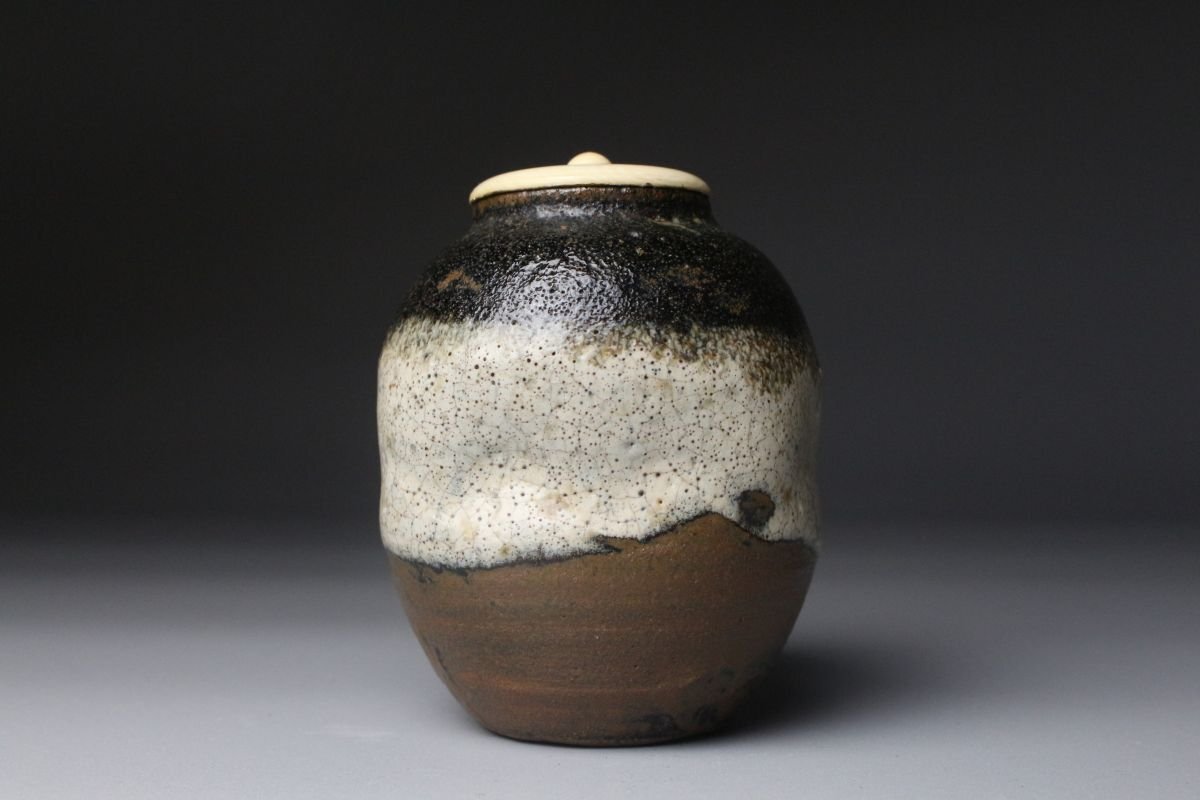 * * * 商品詳細 * * * ここでしか出逢うことのできない唯一の美をご紹介させて頂きます。 朝鮮唐津ならではの黒釉と白釉が織りなす、美しい景色が特徴の筒盃。 丸みのあるフォルムに、自然な釉薬の掛かりが生む景色が、唯一無二の存在感を生み出しています。 手に持ったときのほどよい重量感と持ちやすさ 濃淡のある釉薬が自然に流れ、炎が描き出す唯一無二の表情は、まさに「土と火の芸術」。 素朴ながらも洗練されたその姿は、茶席はもちろん、現代の暮らしにも溶け込む奥深い魅力を持っています。 この機会に是非お手元にてご堪能ください。 ■商品内容/ 茶入、仕服、箱 ■サイズ/横7㎝×高8.5㎝ 箱:四方8.5㎝×高13㎝ ■状態/ 経年によるスレ、小傷、汚れ 箱にスレ、傷、汚れ、底に直しがございます。 ※写真にてご確認、ご了承の上ご入札下さい。