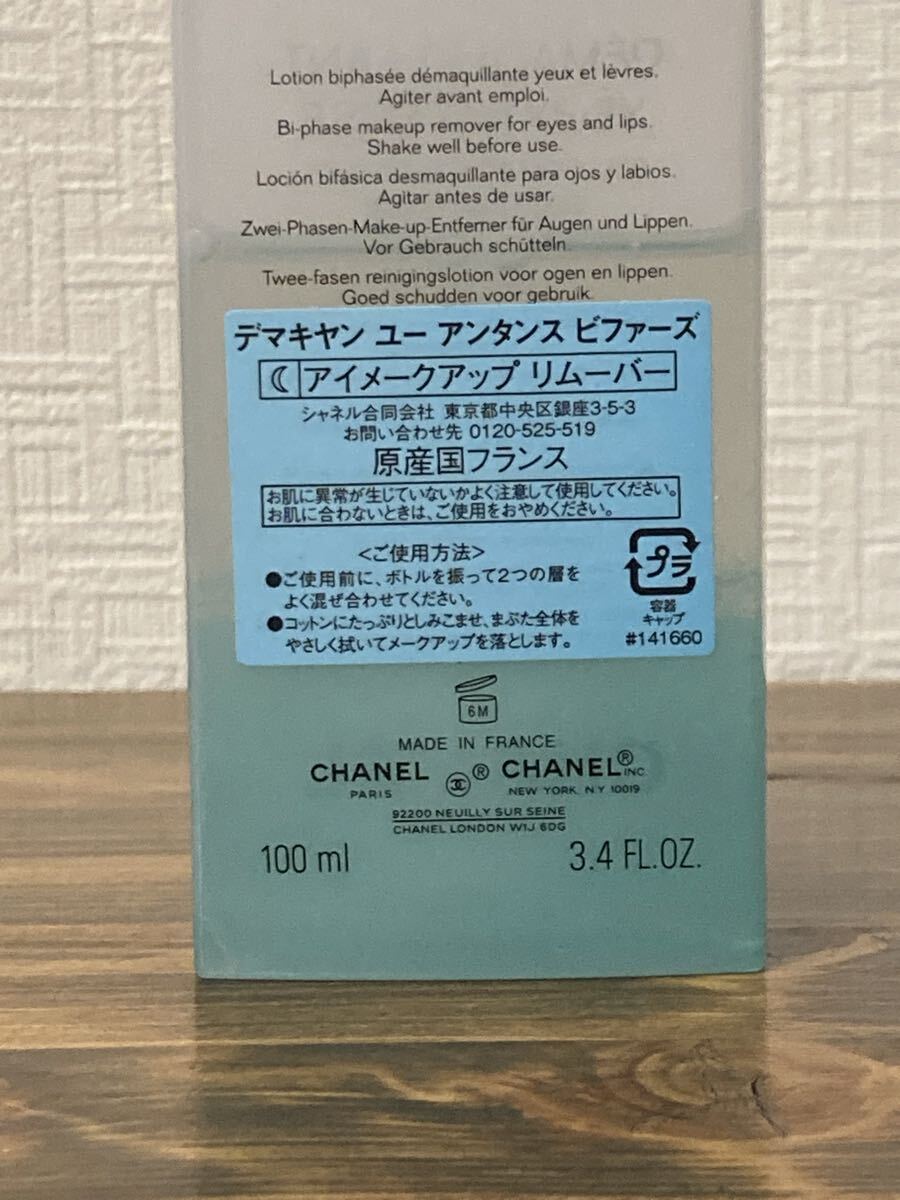 | 商品名稱 : | I5J362◆ シャネル CHANEL デマキヤン ユー アンタンス ビファーズ アイメークアップ リムーバー 100ml |
