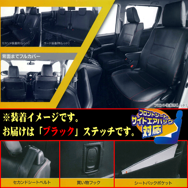 | H26.1~H29.7 トヨタ ノア・ヴォクシー/エスクァイア専用 (7人乗り「セカンド キャプテンシート」) ソフトレザーRシートカバー W7-33 ブラックレザー&ブラックステッチ |