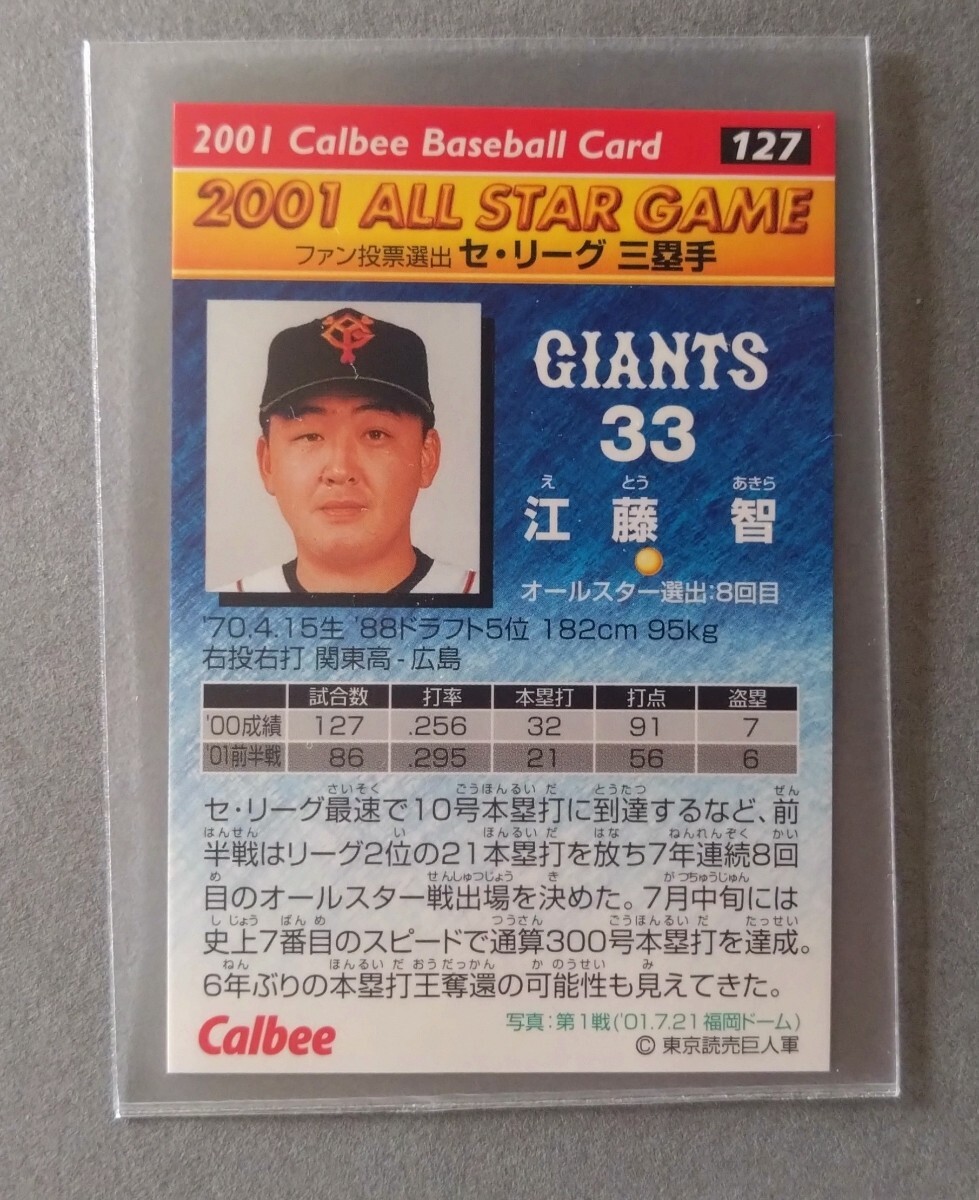 | 商品名稱 : | 2001年 カルビー プロ野球チップスカード 江藤智 ゴールドサインカード No.127 東京読売巨人軍 |