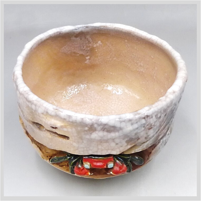 ◆製品名:楽山焼 蟹 茶碗 抹茶 湯呑 茶道具 名工 愛媛県松山 伊予 道後 陶器