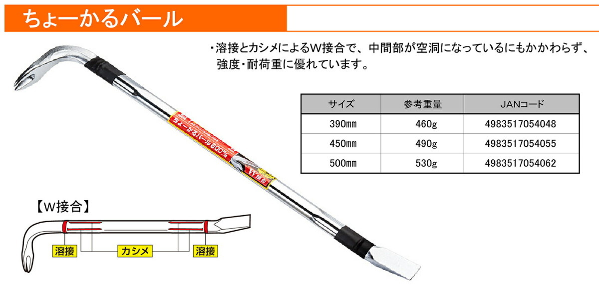 | 商品名稱 : | 〈バクマ〉ちょーかるバール ゴム巻 450mm JAN:4983517054055 |