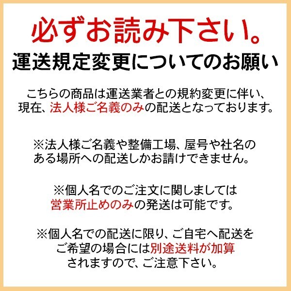 会社・店舗名義(○○販売店.○○板金など)のお届け先はこれまで通り配送させていただきます。