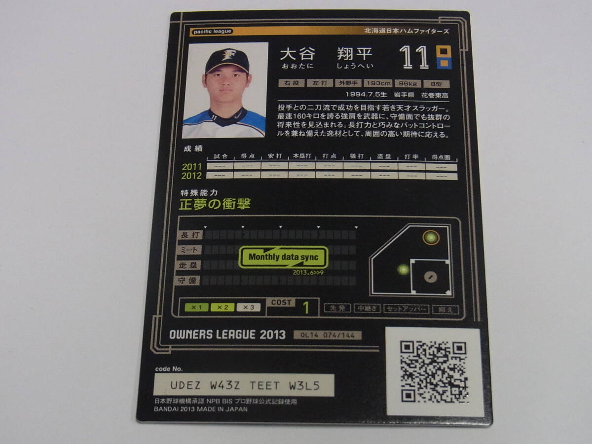 35/希少 ルーキーカード OHTANI SHOHEI 大谷翔平 プロ野球 オーナーズリーグ 正夢の衝撃 2013 BANDAI 打者 北海道日本ハム