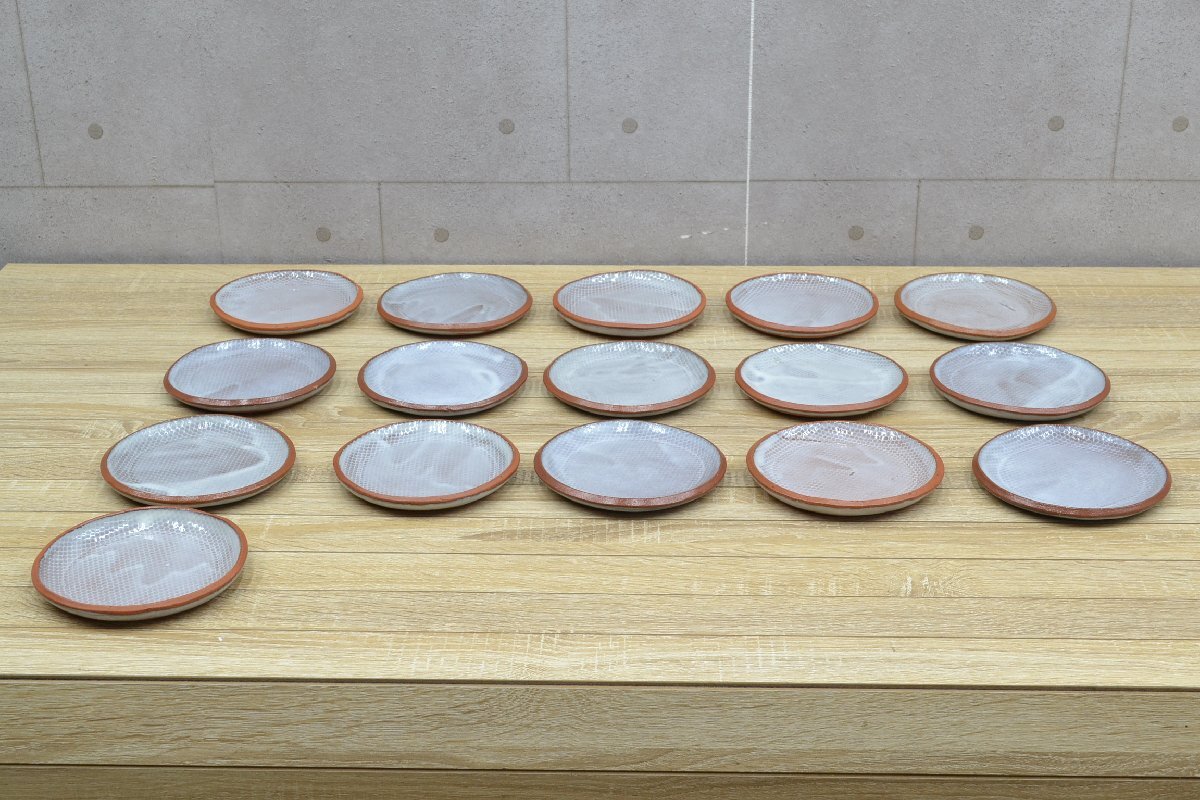 C2795■唐津焼 無庵■丸平皿 16客セット■業務用和食器■旅館・小料理・割烹・和食レストラン
