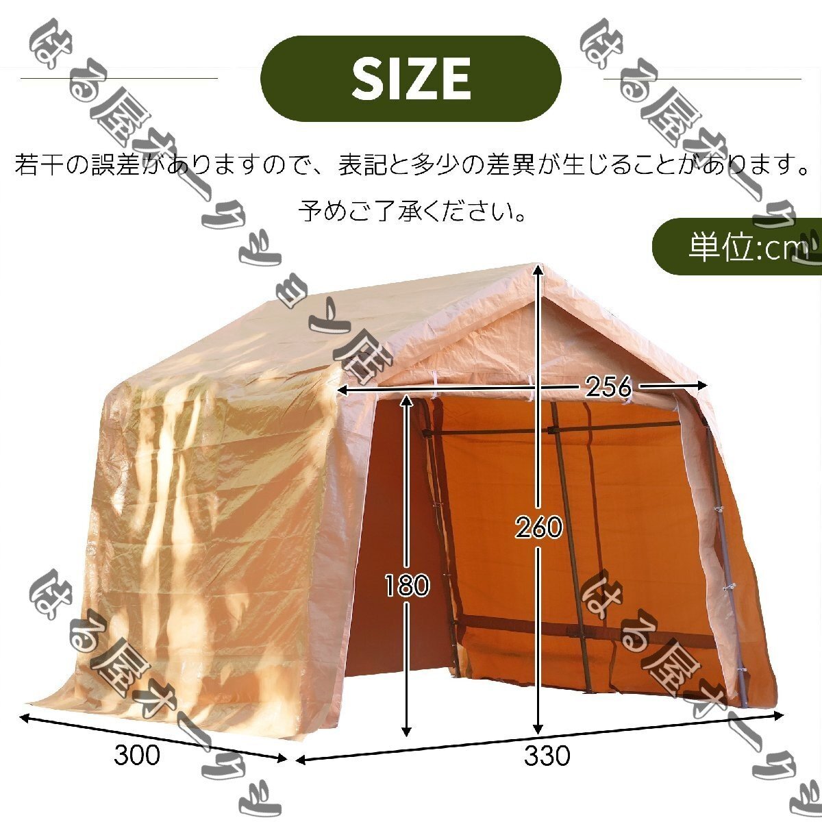 【UPF50+UVカット&防雨】テント 車庫テント ガレージテント 車庫 お祭り 倉庫 奥3m×幅3.3m×高さ2.56mガレージテント カーポート