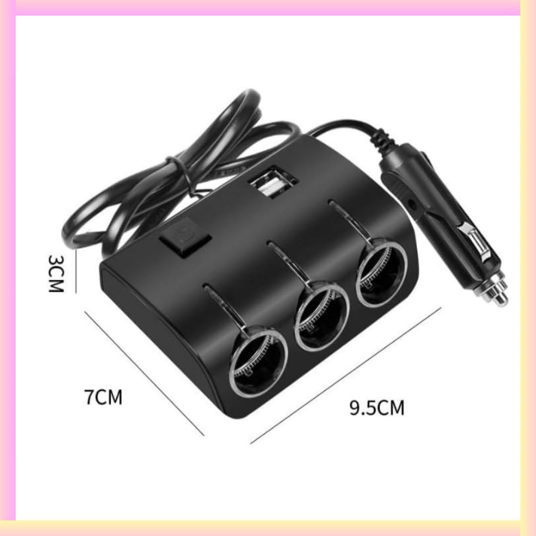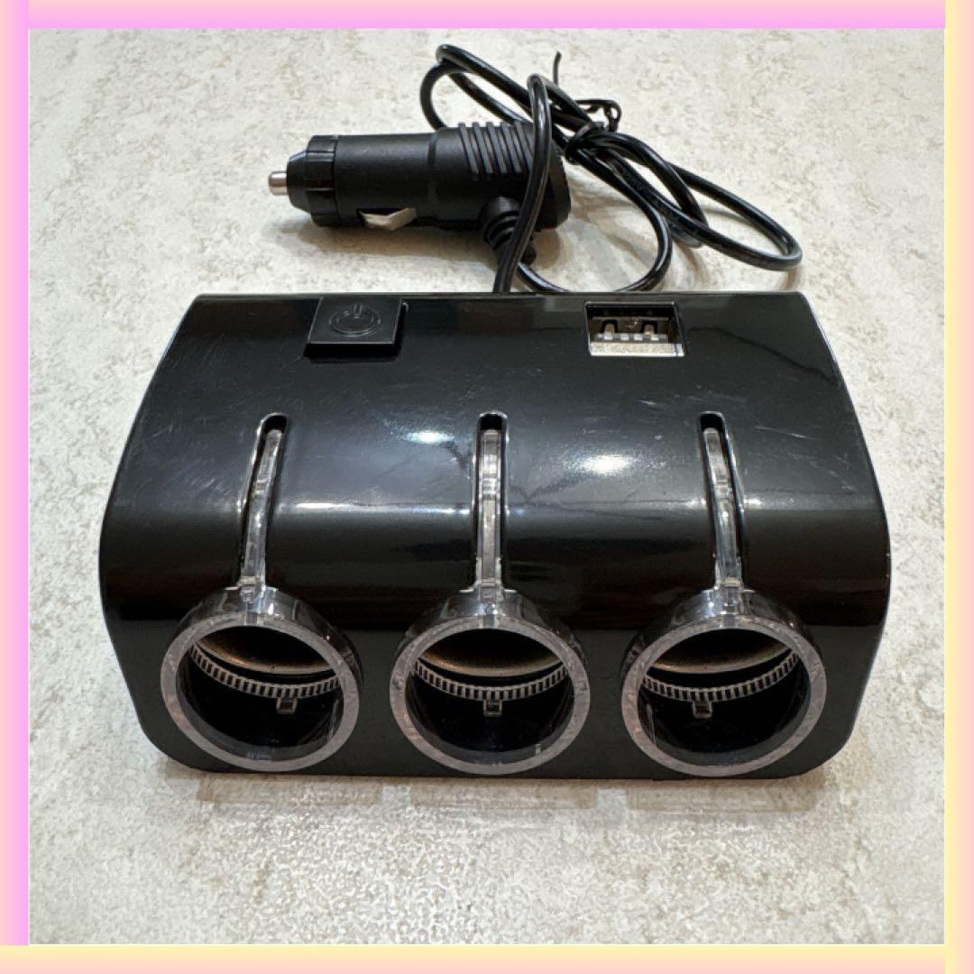 12V車用 シガーソケット 3連 USB2口 電源スイッチ付 分配器