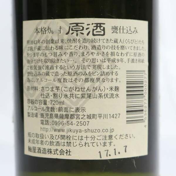 | 商品名稱 : | 1円~ 軸屋酒造 コガネセンガン 原酒 甕仕込み 37度 720ml 詰日17.01 X25J140433 |