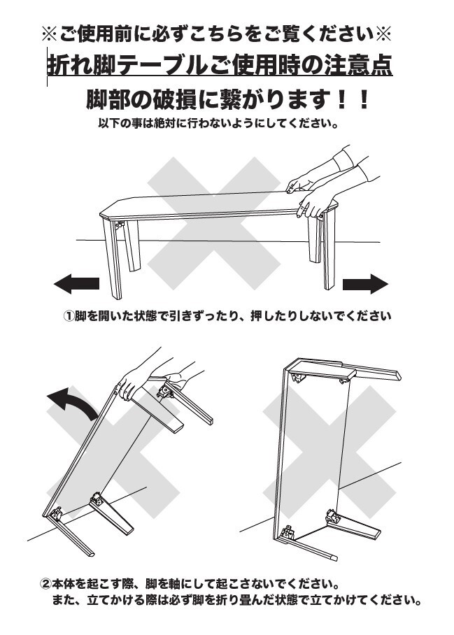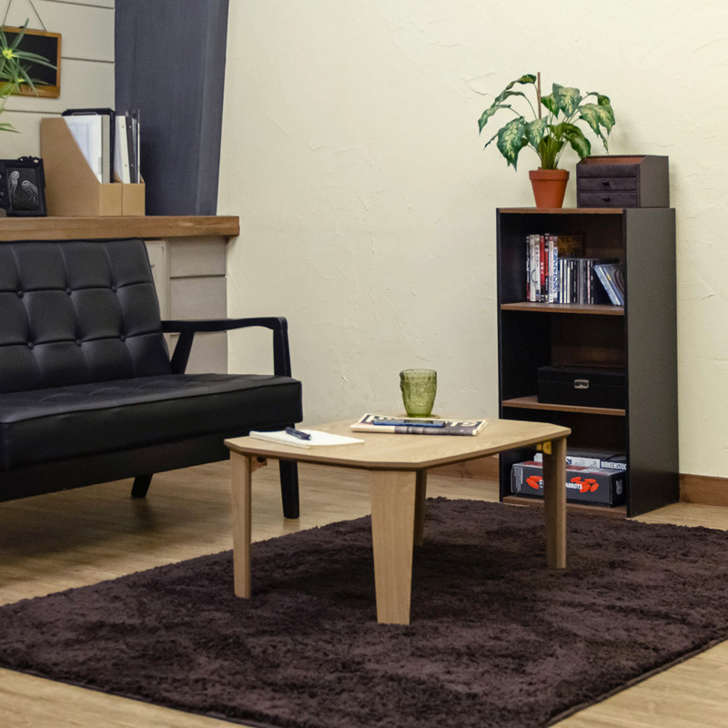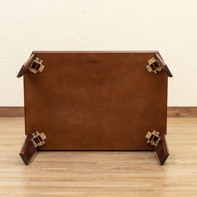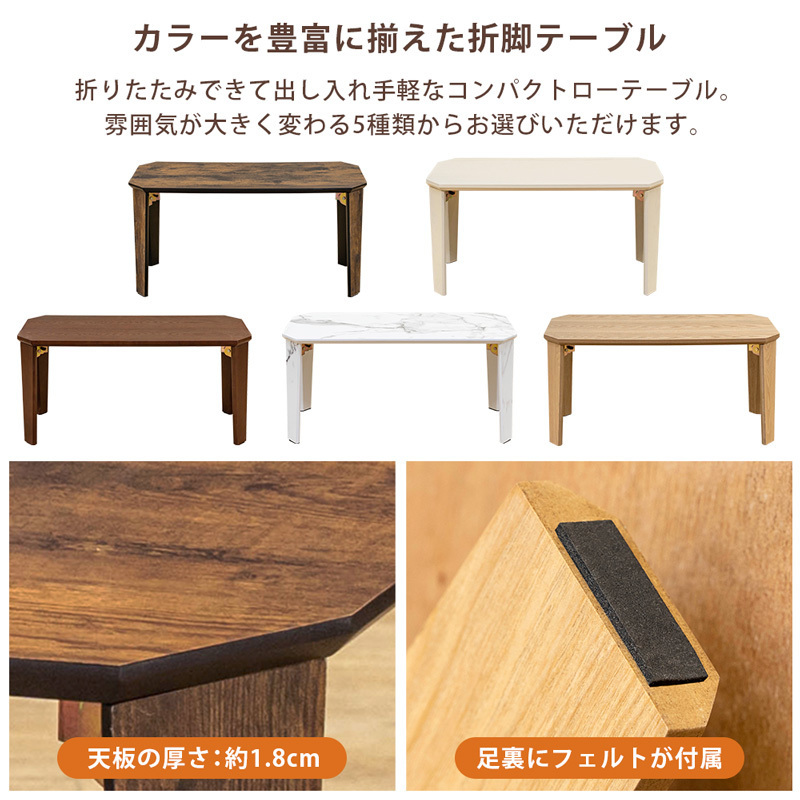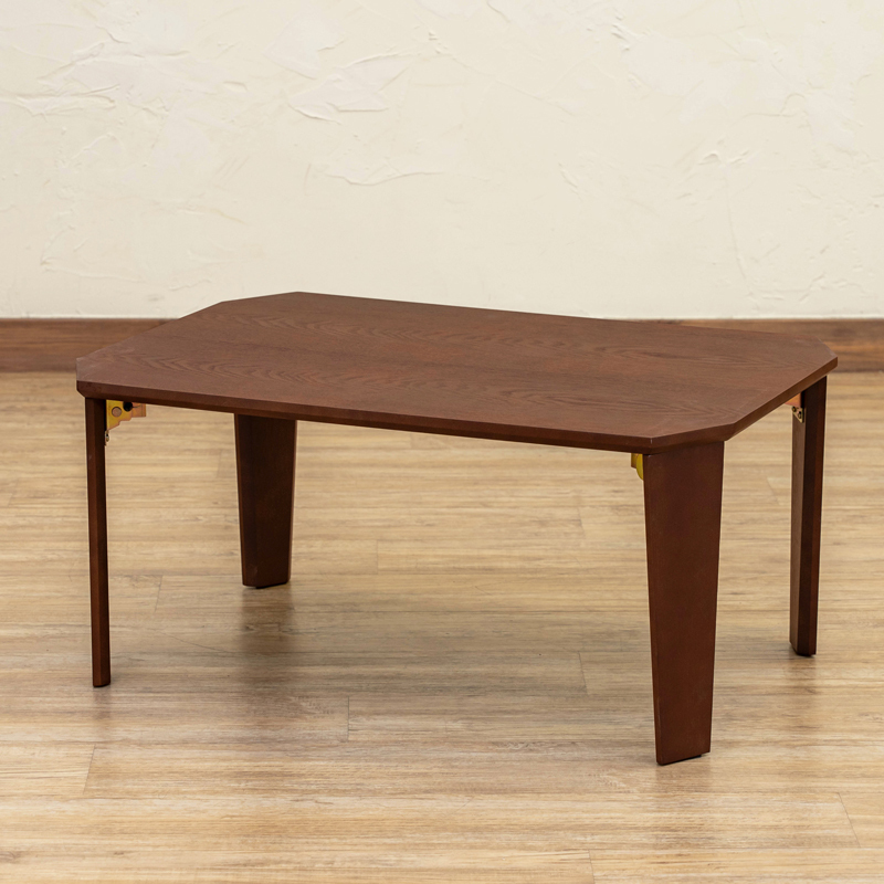 脚を折りたたむことで収納スペースを取らず、出し入れも簡単な折れ脚テーブル。
