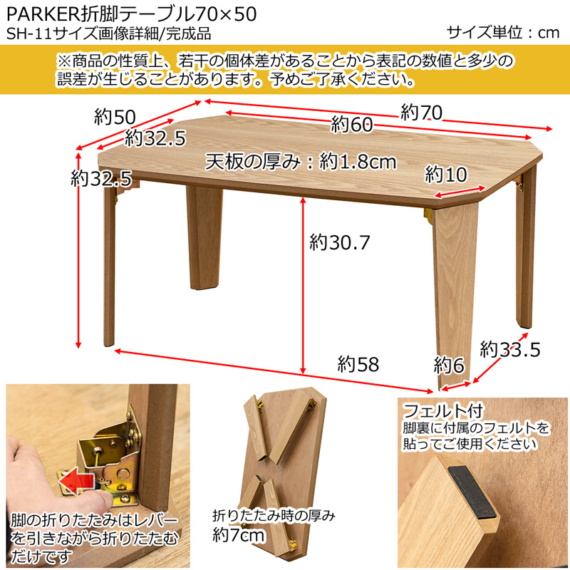 天板の厚み:約1.8cm 折りたたみ時の厚み:約7cm
