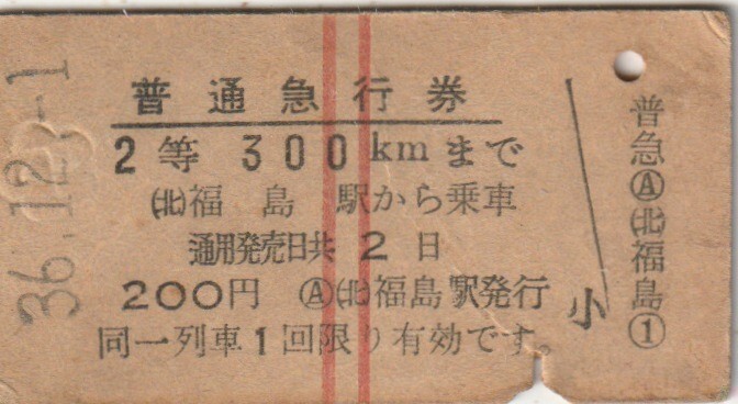 | 商品名稱 : | 国鉄A型常備2等急行券福島駅発行S36 |