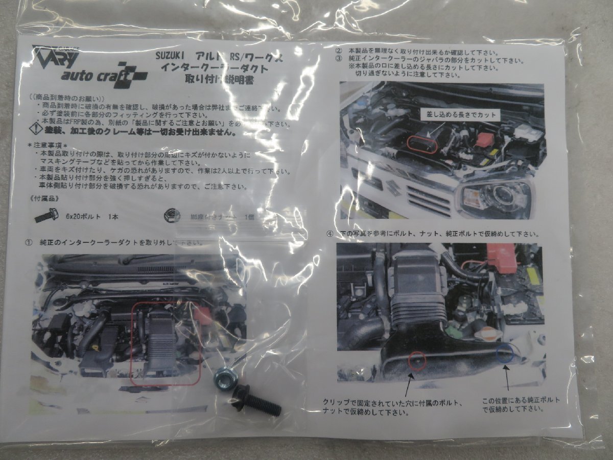 | 商品名稱 : | 展示未使用品 オートクラフト インタークーラーエアガイド 品番 HA36-IC002C アルトワークス カーボン製 |