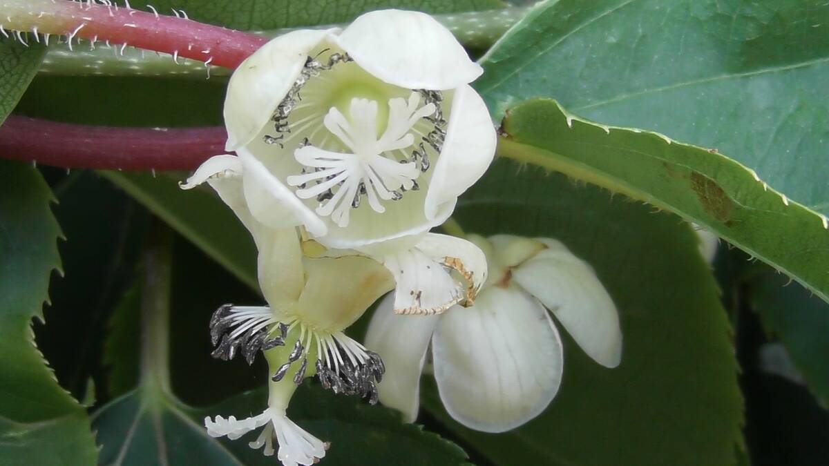 が必要です。サルナシの栽培の研究が進められていますが、雄株、雌株、両性花の株の3種類があっ