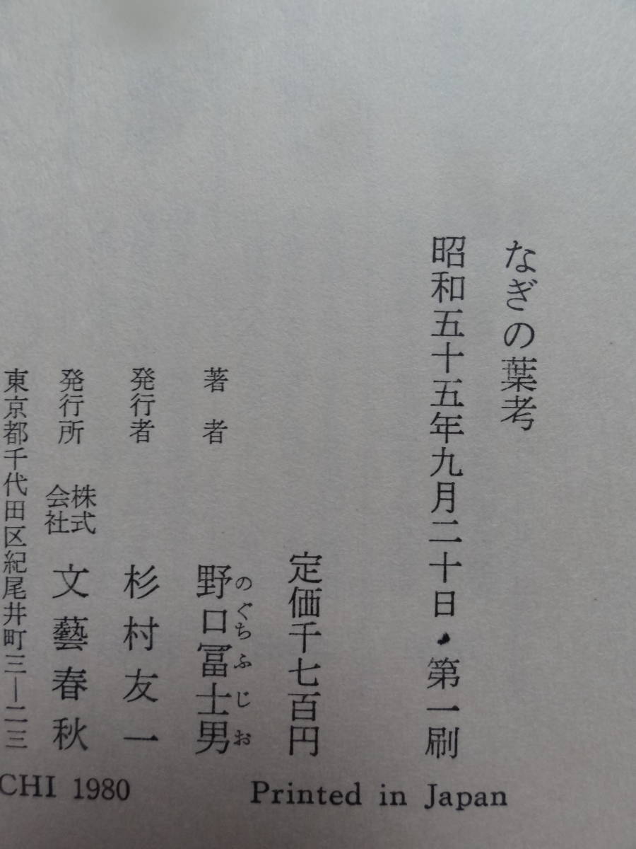 | 商品名稱 : | 野口冨士男 なぎの葉考 昭和55年 文藝春秋社 初版 川端康成文学賞受賞作品 |