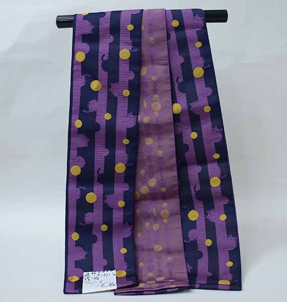 | 商品名稱 : | 半幅帯 浴衣帯 細帯 日本製 ポリエステル100% 紫色×紺色 猫柄 リバーシブル レターパック便可 新品(株)安田屋 NO41401 |