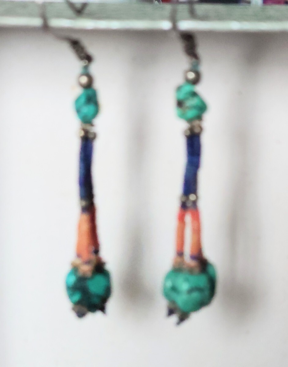 | 商品名稱 : | ターコイズ ラピス コーラルのピアス 全長7.5cm トルコ製 フックは銀製 |
