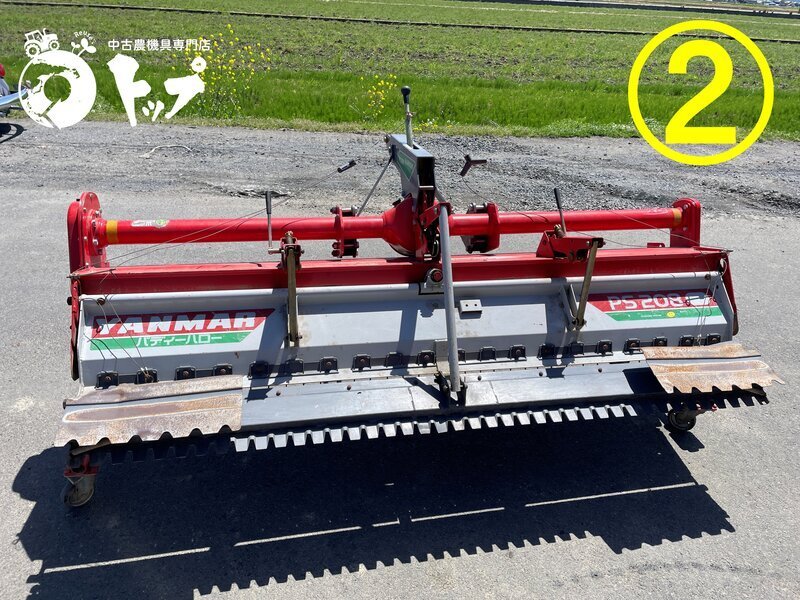 ●商品詳細 商品名:「パディハロー」 型式:「PS208」 メーカー:「コバシ」 商品寸法(cm):「 全長 114 全幅 220 全高 118 」 作業幅:「200cm」 ヒッチ:「古いヤンマーヒッチ」※A2ヒッチではございません 最大馬力:「16-51馬力」 「トップリンク-PTO軸中心40㎝」 「ロアリンク間 46㎝」