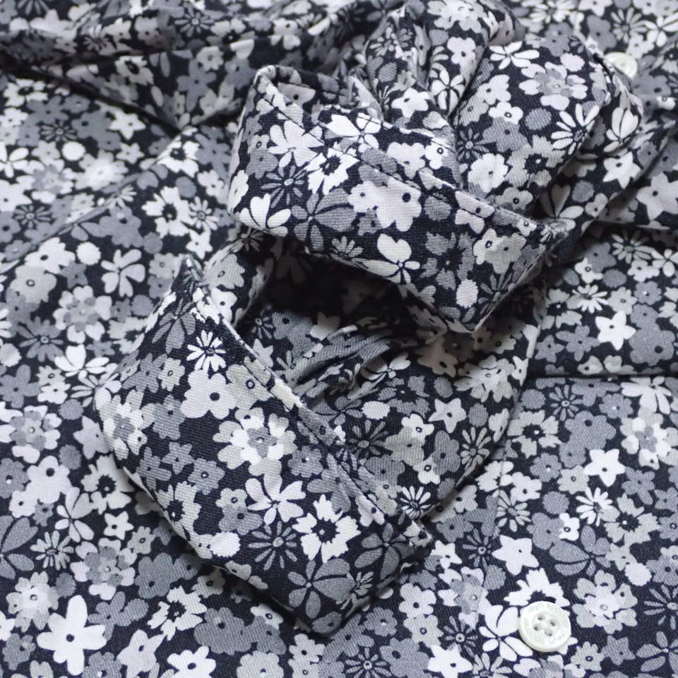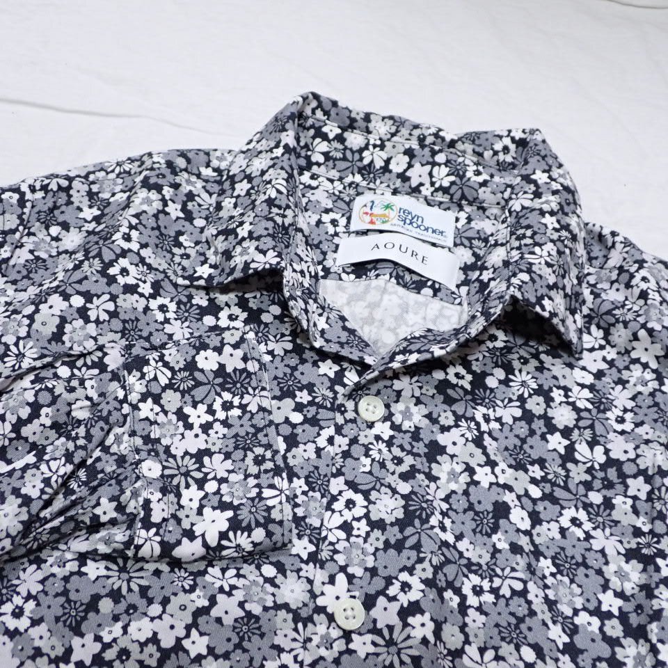 ★美品 AOURE/アウール × Reyn Spooner/レインスプーナー 花柄 長袖シャツ メンズM/ブラック×グレー系/コットン混/総柄&2124800013