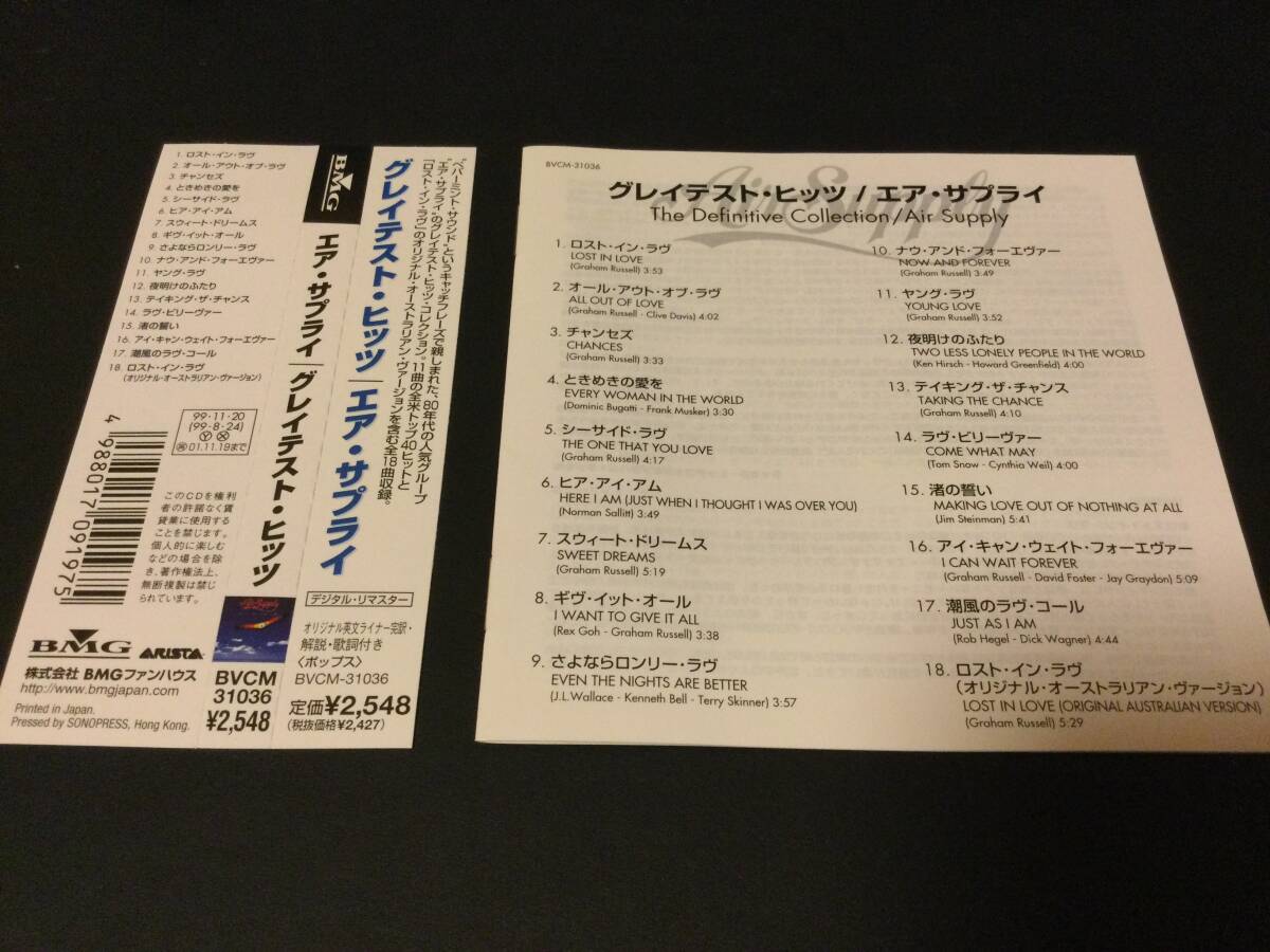 【希少・美品 1999年発売 25年余り所有 国内盤・廃盤】エア・サプライ AIR SUPPLY / THE DEFINITIVE COLLECTION 20Bit Digital Mastering