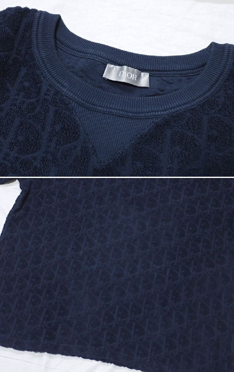★DIOR HOMME/ディオールオム トロッター 半袖 パイルTシャツ メンズM/ダークネイビー/コットン100%/クルーネック&1598000170