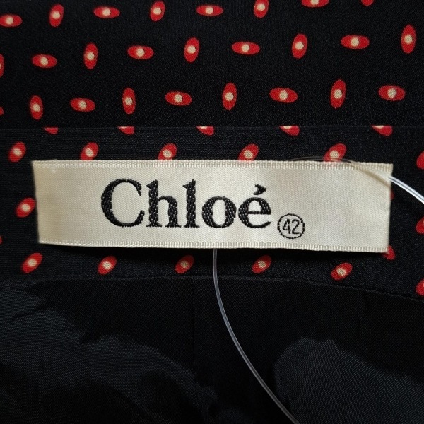 クロエ Chloe ロングスカート サイズ42 L - 黒×レッド×白 レディース マキシ丈/シルク ボトムス
