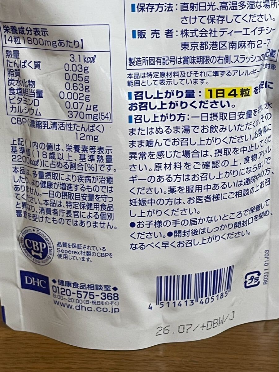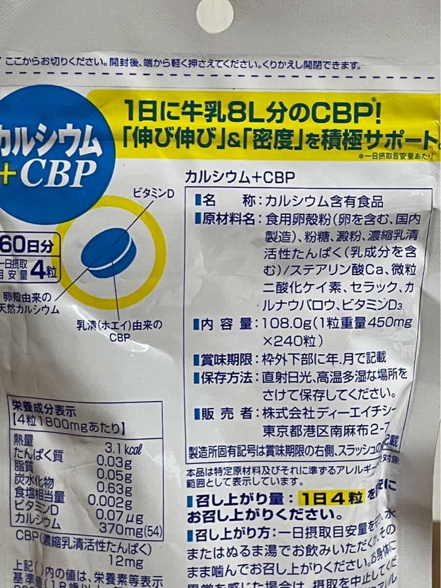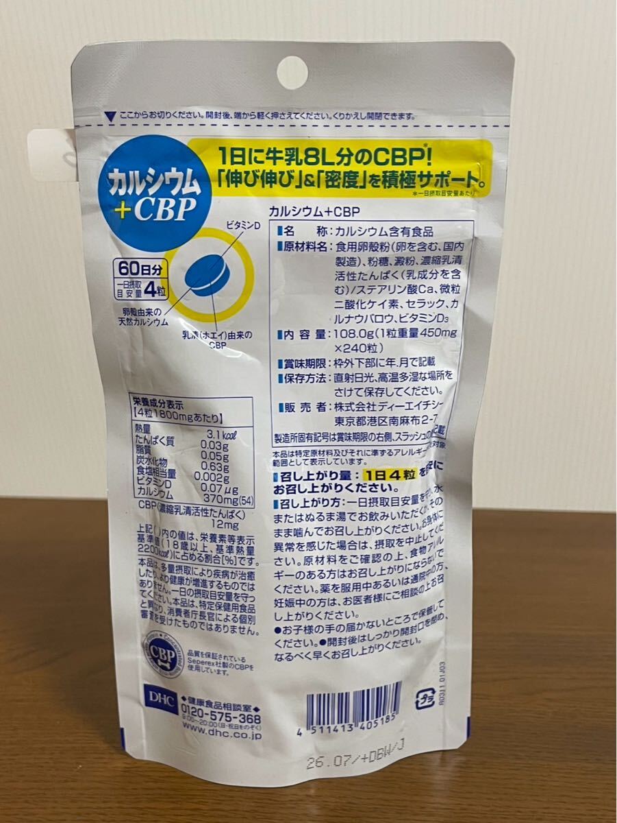 | 商品名稱 : | DHC カルシウム+CBP 60日分 2026.7期限 ★ 66 |