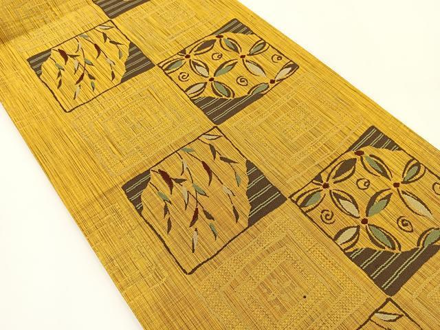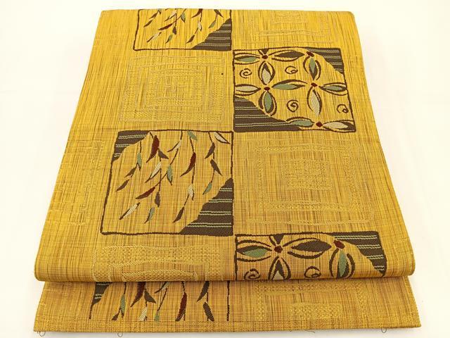 平和屋着物◎六通柄袋帯 色紙草花文 正絹 逸品 BAAT5044jr
