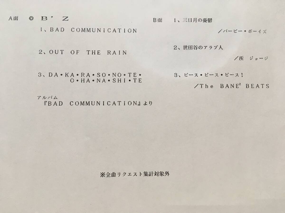 ★非売品!見本盤!NOT FOR SALE ゆうせん プロモオンリー! B'z/BAD COMMUNICATION 他、バービー・ボーイズ 他、1989年 新譜オムニバス