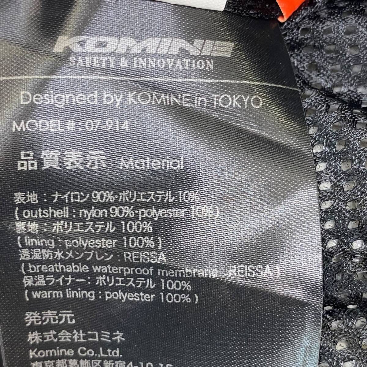 ・付属品:プロテクター(腰、膝)、インナー