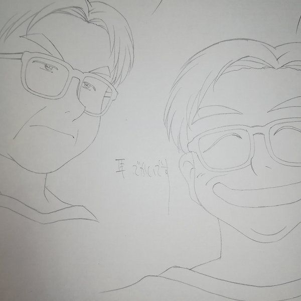 | TVアニメ 水色時代 河合家の家族 先生 キャラ設定 各キャラの小物類の設定 / 直筆・コピー混在 ※直筆の設定画や、それをコピーしたもの、一部コピーを貼り付けたもの、コピーに鉛筆等で加筆したものが混在しています。