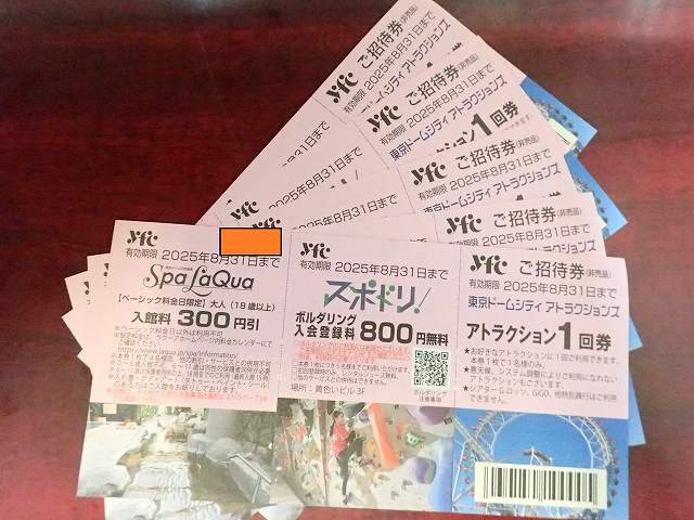 【大黒屋】★東京ドームシテイ アトラクションズ アトラクション1回券&割引券 5枚 有効期限~25年8月31日★